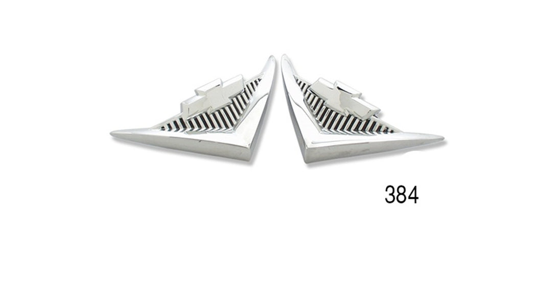 The Danchuk 1955 Chevrolet Bel Air V8 Under Taillight Emblem is a sought-after vintage part made in the USA. This emblem it painted correctly unlike some other the other reproductions. Designed for easy installation on the rear of a classic 1955 Chevrolet vehicle, features a triple chrome finish and adds a touch of authenticity to the car's exterior. This emblem is a unique and high-quality addition to any collector's car.